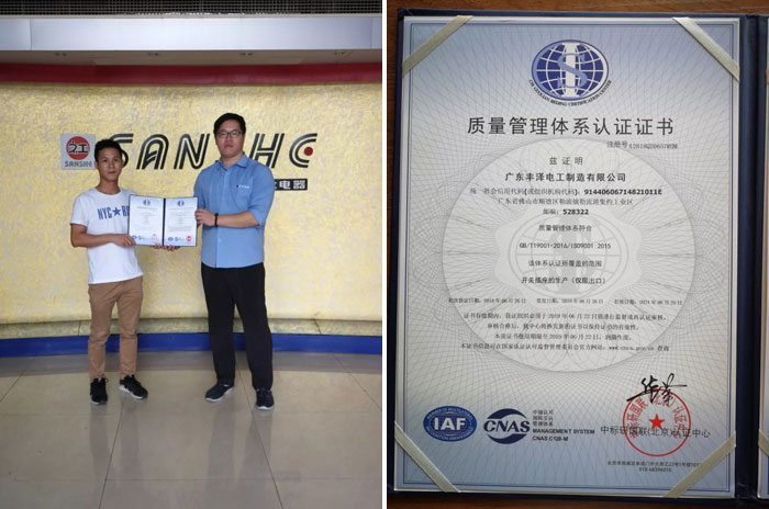 經過品智咨詢的(de)精心輔導,豐澤電(diàn)工(gōng)全體(tǐ)員(yu'↑án)工(gōng)的(de)共同努力,廣東(dōng)豐澤電(diàn)工(gō>$ ng)制(zhì)造有(yǒu)限公司(三社電(diàn)器(qα¥δ♠ì))于6月(yuè)中旬順利通(tōng£∑♠)過國(guó)家(jiā)認證中心質量管理(lǐ)體(tǐ₹φ®)系的(de)審核,并獲得(de)ISO9001:2015質量管理(l >÷¶ǐ)體(tǐ)系認證證書(shū)。